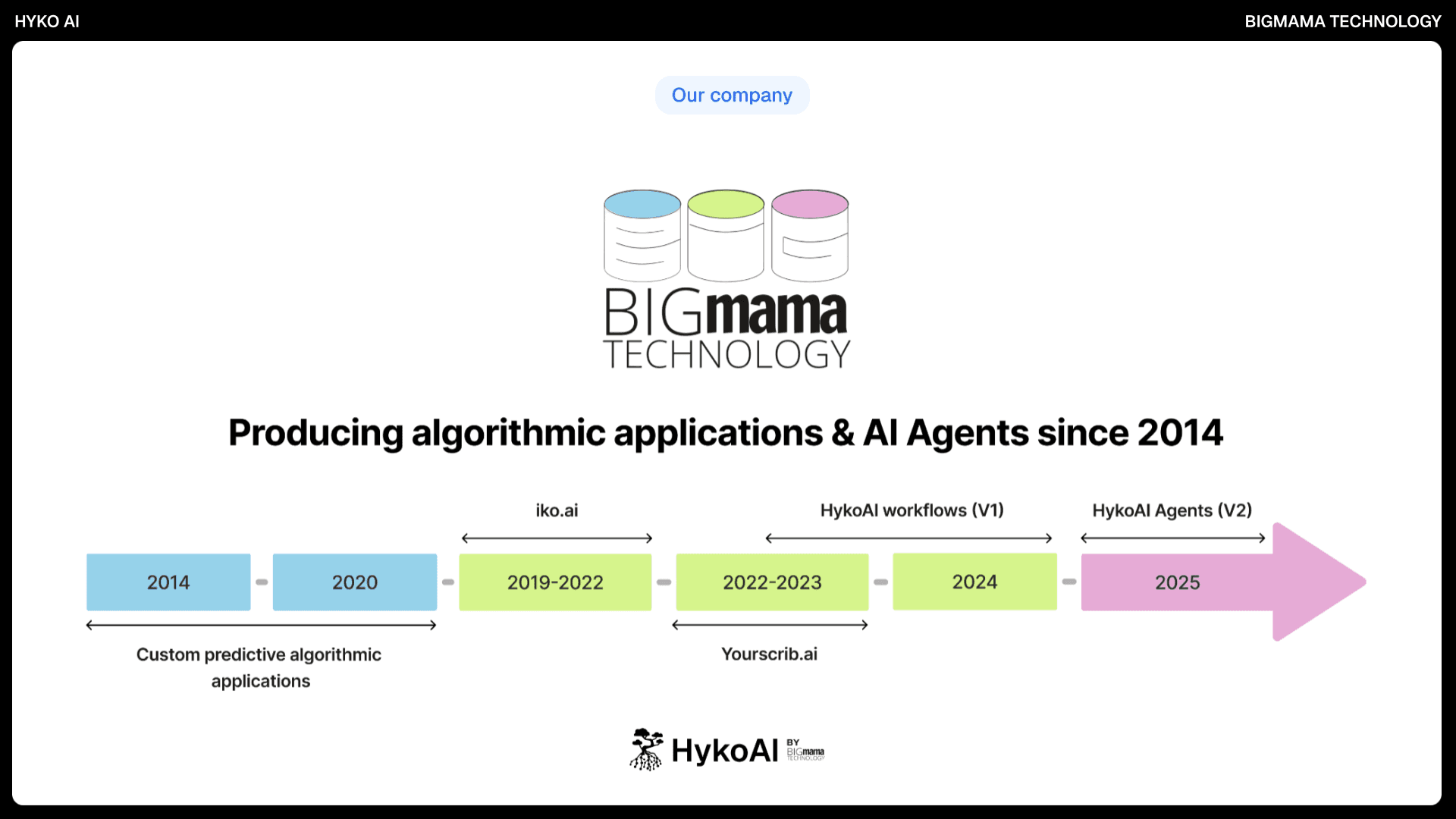 De iko.ai à Yourscrib.ai, puis à HYKO.ai, nous avons progressivement franchi un cap décisif : nous sommes passés à la conception de nos propres logiciels et plateformes d’intelligence artificielle.